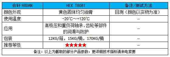 HEX T8081 高溫極壓鋰基潤(rùn)滑脂 銷售中心:0731-83993021