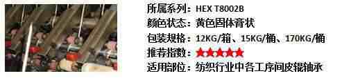 ??? 2、用于紡織、印染和造紙工業(yè)中承受潮濕蒸汽或酸堿工況的軸承的潤滑,如:清洗機、洗水機、絲光處理機、干燥機和高溫蒸汽閥門。可用于機床導(dǎo)軌、絲桿螺紋的