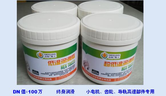 HEXT 8023-2低溫高速潤滑脂“合軒”汽車天窗、儀表電機(jī)齒輪潤滑產(chǎn)品,主要針對(duì)速度因數(shù)達(dá)到1,000,000,溫度在-60℃以上的高轉(zhuǎn)速軸承的長效潤滑,適用于小電機(jī)、微電機(jī)、軸承、齒輪、絲桿、導(dǎo)軌等的終身潤滑,已經(jīng)成功用于汽車天窗、寒區(qū)儀表電機(jī)齒輪。